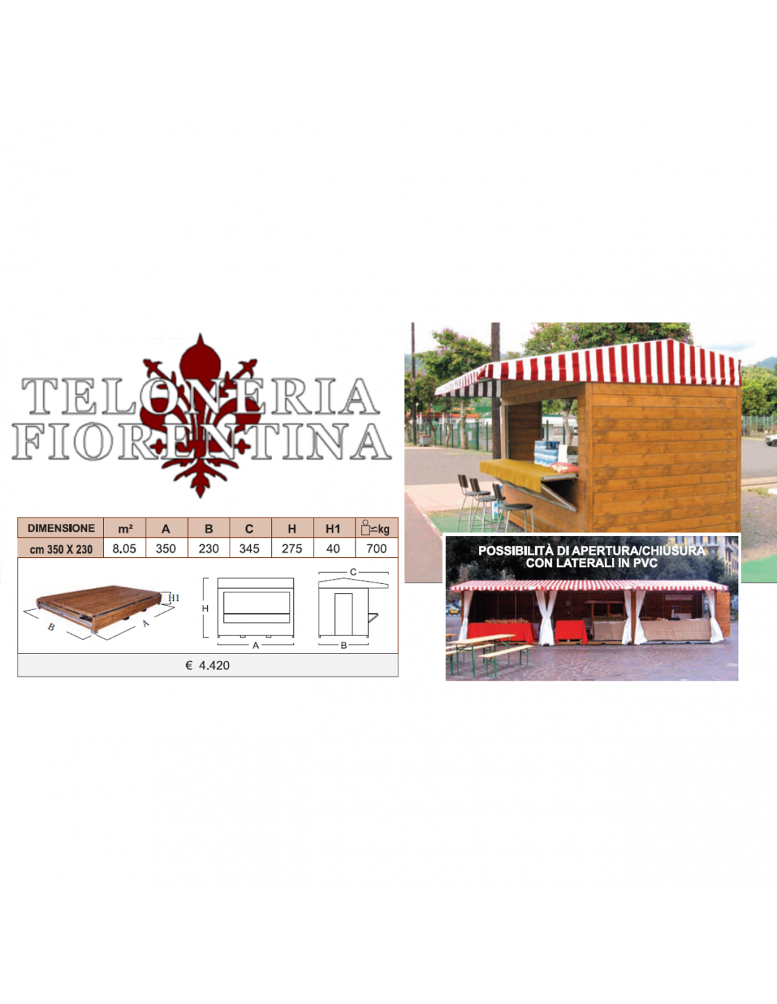 Struttura studiata per attività commerciali temporanee di breve e media durata in acciaio legno o alluminio