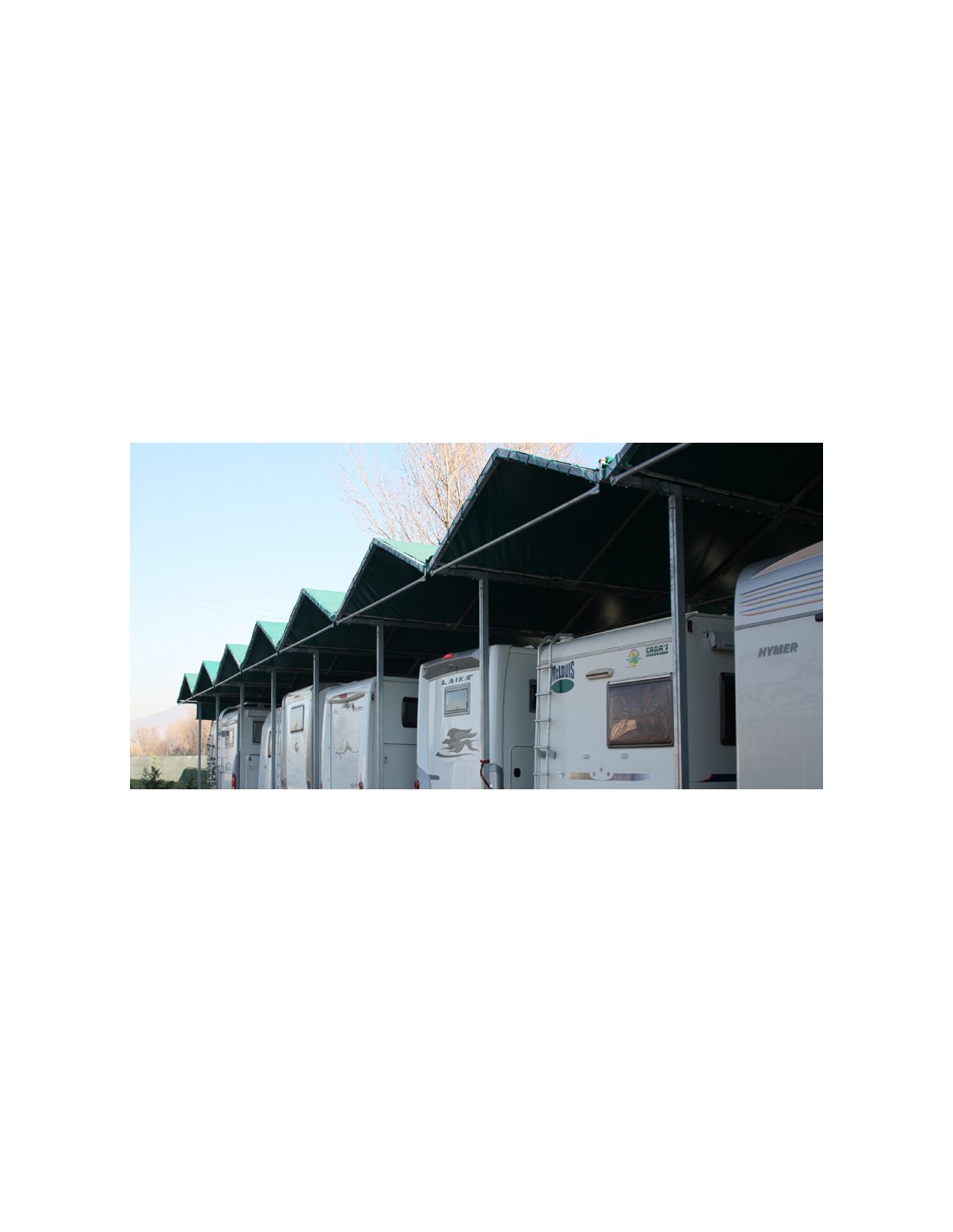 Il modello di rimessaggio e copertura per camper è realizzato appositamente per il ricovero dei camper o dei furgoni. È caratterizzato da un rinforzo lungo la profondità e sul tetto ed è presente anche una paleria supplementare. Il materiale di costruzione è l'acciaio zincato in tubolari e il telo di copertura può essere in polietilene o in PVC, a seconda delle esigenze. Come optional sono presenti le chiusure anteriori o posteriori